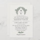 Um convite de casamento monograma tradicional em branco esbranquiçado com seu monograma dentro, uma coroa de louros em forma de arco em tons de verde-sábio e verde-oliva com design de tipografia de cinza e uma formulação tradicional de convite para o casamento. O convite de casamento de louros esbranquiçados com um monograma verde, com duas iniciais, e belas fontes com pais hospedados.