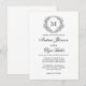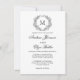 Folheto Branco e Preto Crest Monograma Convites de Casamento. Simples, elegante, simplesmente perfeito; ele apresenta uma coroa floral desenhada à mão rodeando um monograma de casamento serif. É personalizado em tipografia elegante, e acentuado com a caligrafia clássica.