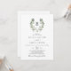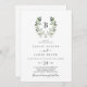 Este convite de casamento do monograma do ramo de oliveira moderno é perfeito para um casamento de boho. O design rústico, porém elegante, apresenta folhas botânicas de cor aquática simples e azeitonas pretas num pequeno galho com um toque mediterrânico clássico. Personalize o cartão com seu último monograma inicial.