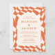 Convide convidados para comemorar seu dia especial com os convites para casamento do na moda Retro Orange Checkerboard! O convite mostra seus nomes e detalhes de casamento em letras laranja cercadas por um quadro de arco colorido. O plano de fundo apresenta um padrão de tabuleiro abstrato com um esquema de cor laranja e creme.