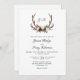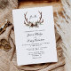 Este convite de casamento rústico com galhadas apresenta as iniciais monográficas da noiva e do noivo, emolduradas por traficantes que são decorados com um buquê floral de cor-de-água. Entre em contato comigo através do Zazzle Chat se você precisar de ajustes de design, mais produtos correspondentes ou outras formas de cores.