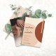 Espessura de 18 pt / Gramatura de 120 lb. Branco suave, textura delicada.