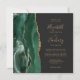Convites Casamento Dourado Agate Dark Square Emerald Green