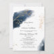 Ponha o tom para o seu elegante casamento com temas azuis com este chic e convite único. Com marinho artístico, salpicos de água azuis e pulverizadores de poeira de ouro, este convite personalizável permite personalizar toda a tipografia no carvão. É a maneira perfeita de convidar seus convidados para seu dia especial e reflete o estilo sofisticado do seu casamento.