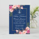 Convites Casamento Dourado Azul Floral, Cor-de-Rosa Náutica