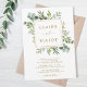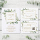 Este convite para o casamento apresenta cor d'água, eucalipto, folhas verdes e um quadro quadrado de ouro. Para personalização mais avançada deste design, clique no link "Personalizar mais". Itens correspondentes também estão disponíveis.