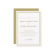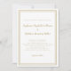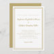 O Convite Elegante e Trendy Wedding apresenta um simples design minimalista contemporâneo, com uma borda dupla em cor dourada, sobre um fundo branco nítido. A formulação tradicional proporciona sofisticação eterno mas moderna. Personalize a design de casamento com seus detalhes em letras e guião dourados. A parte traseira da placa corresponde em tom de ouro sólido.