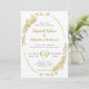 Estes convites florescentes de casamento com uma estrutura decorativa de cor dourada, fonte preta moderna e texto de escrita amarelo ouro num fundo branco são perfeitos para aqueles que procuram convites únicos e elegantes de design. O modelo é fácil de personalizar.