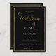 Um modelo de convite de casamento muito simples, moderno, elegante e clássico, com fundo preto, uma moldura de ouro com escovas de mão (não folha real) e um roteiro de caligrafia moderno. Um design chic, eterno que combina o design de casamento formal tradicional com a caligrafia moderna e um trendy layout.