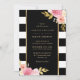 Convide seus convidados para sua elegante festa de casamento branca e preta com estes convites de casamento florais cor-de-rosa pincelado com flores pinceladas em fundo listrado preto e branco. Itens correspondentes disponíveis. Personalizar facilmente online.