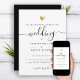 Este convite de casamento chique brilha com simplicidade. Tipografia moderna, caligrafia deslumbrante acentuada por um coração bonito em ouro (impresso), esta suite é mínima e elegante. Espaço para mais detalhes no verso (ou deixar vazio).