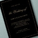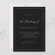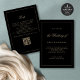 Champagne Dourado convite para casamento negro. Disponível digitalmente e impresso. Personalize facilmente o texto. Adicione um código QR ao seu site de casamento no verso para que os seus convidados possam responder online.