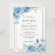 Convites Casamento Dourado com Cor de Água Floral Azul-Luz