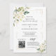 Design moderno e elegante, com flores brancas e folhas verdes, cor d'água, um falso quadro quebrado com brilho dourado, seu código QR para RSVP on-line, em um fundo branco. Use a ferramenta Personalizar para adicionar suas informações. Para obter itens correspondentes, visite minha coleção de casamento de código QR.
