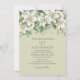 Este elegante convite para o casamento apresenta um arranjo exuberante de lírios brancos e verde ao longo do topo, colocado contra um fundo verde macio. A refinada tipografia, com delicada aparência cardíaca, transmite romance e sofisticação do eterno. Perfeito para casais planejando uma festa de jardim, botânica ou casamento clássico, esta design combina beleza natural com charme formal.