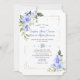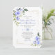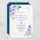 Design romântico e elegante com cantos de flores azuis de cor d'água, cantos de ouro únicos, divisor floral; no buquê floral traseiro sobre fundo azul-oceano. Use a ferramenta Personalizar para adicionar suas informações e fazer alterações. Itens correspondentes podem ser encontrados na minha Coleção de Bloom Floral Azul.