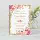 Cartão de Convite Para Casamento Com Lente Dourada Glitter Floral Cor-De-Vidro Floral Cor-De-Rosa Esbranquiçada