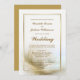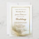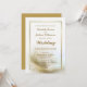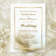 Um convite de casamento elegante de pena de ouro. Os detalhes da cerimônia e local de recepção estão incluídos neste convite.