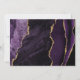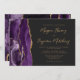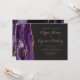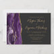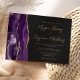 A borda esquerda deste elegante convite de casamento moderno apresenta uma cor d'água roxa, borda agitada, aparada com falso brilho dourado. O texto personalizável combina um script moderno de cor dourada, fontes copperplate e itálico em um fundo preto de ardósia. O verso apresenta um design de agate roxo e dourado correspondente.