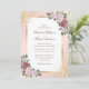 Convide seus hóspedes para sua elegante festa de casamento de ouro e blush com estes convites florais de casamento com flores cor-de-rosa e verde armando os detalhes de casamento dentro de uma moldura de ouro adornada com confete de ouro. Itens correspondentes disponíveis.