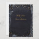Um sumptuoso céu noturno azul-água, marinho, em meio a espumantes estrelas douradas em cascata à caligrafia clássica em inglês, com um derramamento de manchas de tinta dourada. Procurando produtos correspondentes ao seu convite? Envie-me uma mensagem através de um chat acima ou através do meu e-mail em leonbience@rogers.com
