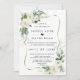 Design de cartão elegante, com vegetação de cor aquosa, branca, flores creme, falso quadro de ouro, sobre fundo branco. Use a ferramenta Personalizar para adicionar suas informações. Para obter itens correspondentes, visite minha Coleção de Flores de Marfim Branca.