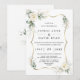 Design de cartão único com cor d'água delicada, folhas verdes e douradas, brancas, flores creme, falso quadro de ouro, sobre fundo branco. Use a ferramenta Personalizar para adicionar suas informações. Para itens correspondentes, visite minha Coleção Floral Dourada Greenery