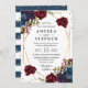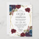 Elegante Boho Watercolor Vermelho e Azul Flores de inverno e design de folhagem com estrutura geométrica dourada