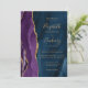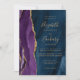 Este elegante convite de casamento moderno apresenta uma cor d'água púrpura, design, aparada com uma falsa brilha dourada. O texto personalizável combina manuscrito dourado, fontes em copperplate e itálico em um fundo de marinho azul de aquarela. O verso apresenta uma design de agata roxa e dourada coordenadora.