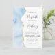 A borda esquerda deste elegante convite de casamento moderno apresenta uma cor azul-d-água pastel, cor azul-d-água, aparada com falso brilho dourado. O texto personalizável combina manuscrito, copperplate e fontes itálicas em cinzas de carvão em um fundo branco. O verso apresenta um design de agate dourado e azul-bebê correspondente.