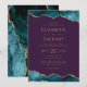 Este elegante convite de casamento moderno apresenta as cores superior e inferior da água lacrimejada, bordas cortadas com falsa brilho dourado. O texto personalizável combina fontes de serifa douradas, sans serif e itálico em um fundo roxo. O verso apresenta um design de chaleira e de agata dourada.