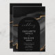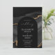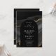 Este design moderno apresenta uma forma de arco preto sobre um fundo de aquarela preta, cortada com brilho dourado. A palavra "casamento" aparece em um roteiro branco elegante. Personalize o convite com os nomes da noiva e do noivo numa combinação de tipografia serif e sans serif e os detalhes do casamento em itálico.