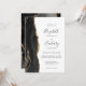 A borda esquerda deste elegante convite de casamento moderno apresenta uma coloração aquosa preta, borda agitada, aparada com falso brilho dourado. O texto personalizável combina manuscrito, copperplate e fontes itálicas em cinzas de carvão em um fundo branco. O verso apresenta um design de agate preto e dourado correspondente.