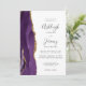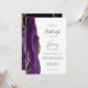 A borda esquerda deste elegante convite de casamento moderno apresenta uma cor d'água roxa, borda agitada, aparada com falso brilho dourado. O texto personalizável combina manuscrito, copperplate e fontes itálicas em cinzas de carvão em um fundo branco. O verso apresenta um design de agate roxo e dourado correspondente.