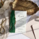 A borda esquerda deste elegante convite de casamento moderno apresenta uma esmeralda verde aquarela agate borda com falsa brilho dourado. O texto personalizável combina manuscrito, copperplate e fontes itálicas em cinzas de carvão em um fundo branco. O verso apresenta um design emerald verde e dourado.