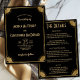 Convites Casamento Dourado de Arte Chic Black Deco Floral A