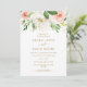 Convites Casamento Dourado de Blush Floral de Watercolor