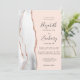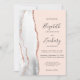 A borda esquerda deste elegante convite de casamento moderno apresenta uma cinza e uma aquarela branca, aparada com falso brilho de rosa. O texto personalizável combina fontes de letra manuscrita, copperplate e itálico em preto de ardósia em um fundo cor-de-rosa pincelado. O verso apresenta uma cinza correspondente, design branco e rosa dourado.