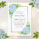 Convites Casamento Dourado de Borda Azul Hydrangea Watercol