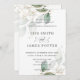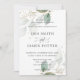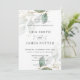 Este convite de casamento chic tem delicada folhagem verde e dourada. Personalize-o com seus detalhes de forma fácil e rápida, basta pressionar o botão personalizar para reorganizar e formatar o estilo e a colocação do texto. c) O Feliz Cat Studio
