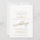 Este elegante cartão de convite para casamento por caligrafia em ouro é perfeito para um casamento outono. A design neutra apresenta uma carta minimalista decorada com a tipografia falsa de ouro romântica e caprichosa. Para mais opções de texto de convite para o casamento, consulte a coleção de casamento elegante de caligrafia em ouro: https://www.zazzle.com/collections/119414285214417736 Por favor, note que este design não contém folha de ouro real. É um gráfico de alta qualidade feito para se parecer com folhas de ouro.