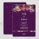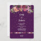 Um fundo roxo profundo é estudado com confete dourado enquanto uma vívida borda superior de imagens florais de aquarelas faz este convite de casamento atordoante e memorável. As cores na borda do buquê floral incluem roxo violeta, pêssego, rosa, lavanda e verde. Seu texto personalizado está no centro. Uma faixa divisora contendo as imagens florais adiciona interesse extra perto do fundo. A parte de trás do convite repete o fundo roxo profundo com a camada de confetti. Espetacular para casamentos em qualquer estação, mas especialmente para o final do verão, outono e épocas de inverno.