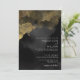 Imaginem um convite de casamento que incorpore elegância e estilo modernos e minimalistas. O pano de fundo é um preto elegante e profundo, criando uma fundação ousada para o design. Um padrão de ouro na moda espalha-se por ele, feito com traçados fluidos, orgânicos de aquarela ou tinta alcoólica, evocando as linhas mesmerizantes de formações de agatos ou geodos. O texto apresenta uma mistura de fontes clássicas e serif e fontes modernas em branco nítido, adicionando uma vibração nova e contemporânea. O resultado é uma aparência simples e chique, perfeita para uma celebração minimalista e na moda. Disponível como um convite impresso ou como um convite digital para download que você pode enviar por e-mail ou que foi impresso localmente!