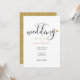 Um convite de na moda de casamento com uma elegante tipografia moderna e um coração de ouro chico. O reverso mostra corações dourados confestos em um fundo dourado. Projetado por Thisnotme©