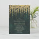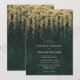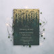 Ilustração de galhos de árvores com um verde-luxuoso e selvagem e folhagem pendurada, dispostos digitalmente com ouro, sobre um fundo verde-esmeralda reluzente, decora este convite de casamento de primavera de verão com um tema de floresta encantado. Um convite elegante e moderno para um casamento de conto de fadas, é o convite perfeito para noivas que amam o cenário da floresta de conto de fadas, o tema da floresta de fadas ou do jardim de fadas e o livro verde esmeralda.