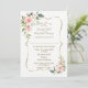 Dourada Convocação De Casamento Para Flores Rosa De Lúxo. Design, charmoso e moderno, com flores rosadas e vernizes, cor-de-água, cor-de-rosa, e folhas verdes, falso quadro de ouro, sobre fundo branco. Na parte de trás, as flores e as iniciais são cortadas. Use a ferramenta Personalizar para adicionar suas informações, alterar fontes, cores da fonte. Para obter itens correspondentes, visite minha Coleção de Flores de Creme Esmagador.