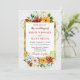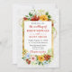 Convites Casamento Dourado de Flores Vermelhas, Amarelas e