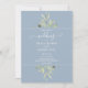 Apresentando delicadas folhas de cor aquosa em fundo azul empoeirado. Este elegante convite de casamento botânico pode ser personalizado com sua informação especial do dia do casamento. Você pode adicionar uma foto ao contrário. Projetado por Thisnotme©