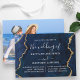 Convite para Casamento de Geodo Marble Agate Azul e Dourado Elegante Moderno. Script de caligrafia de tendências. Fotografia do casal de volta.