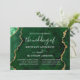 Convocação de Casamento de Geode de Águas Elegante Moderna Emerald Green e Dourada Marble Agate. Script de caligrafia de tendências. Fotografia do casal de volta.